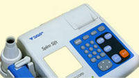 1秒間に吐ける息の量から、標準の方に比べての呼吸機能を測定します。肺年齢を測定することで、健康維持や禁煙指導、呼吸器疾患の予防などにつとめ、患者様に肺の健康意識を高めていただきます。