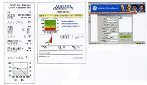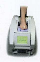 足をのせるだけで、どなたでも簡単に骨密度などが測定できます。骨粗しょう症や骨折の予防・早期発見に用います。