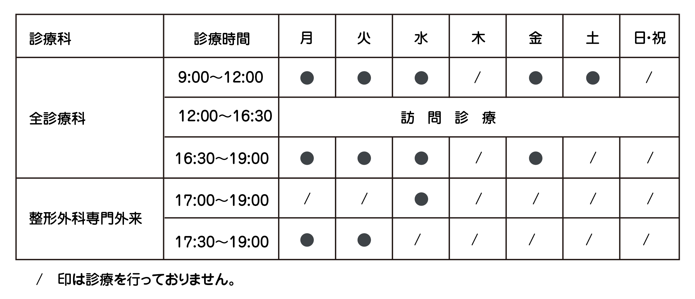 ●月・火・水曜——整形外科専門外来(月・火は17:30、水17:00より)